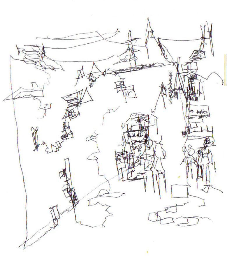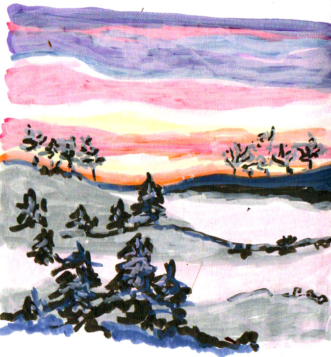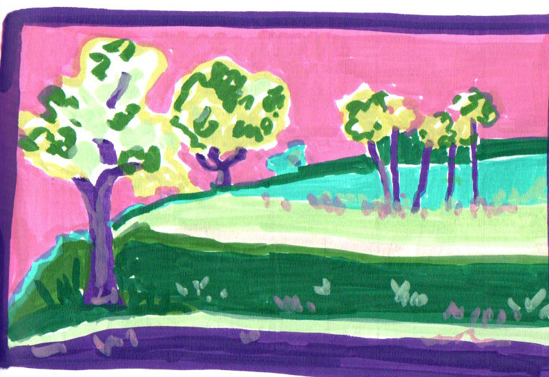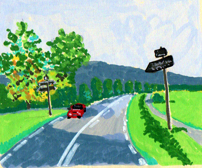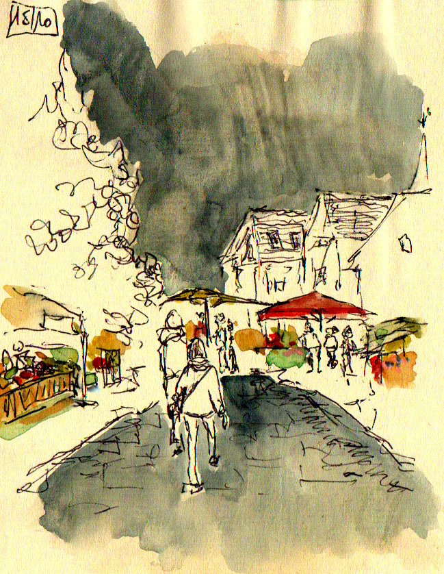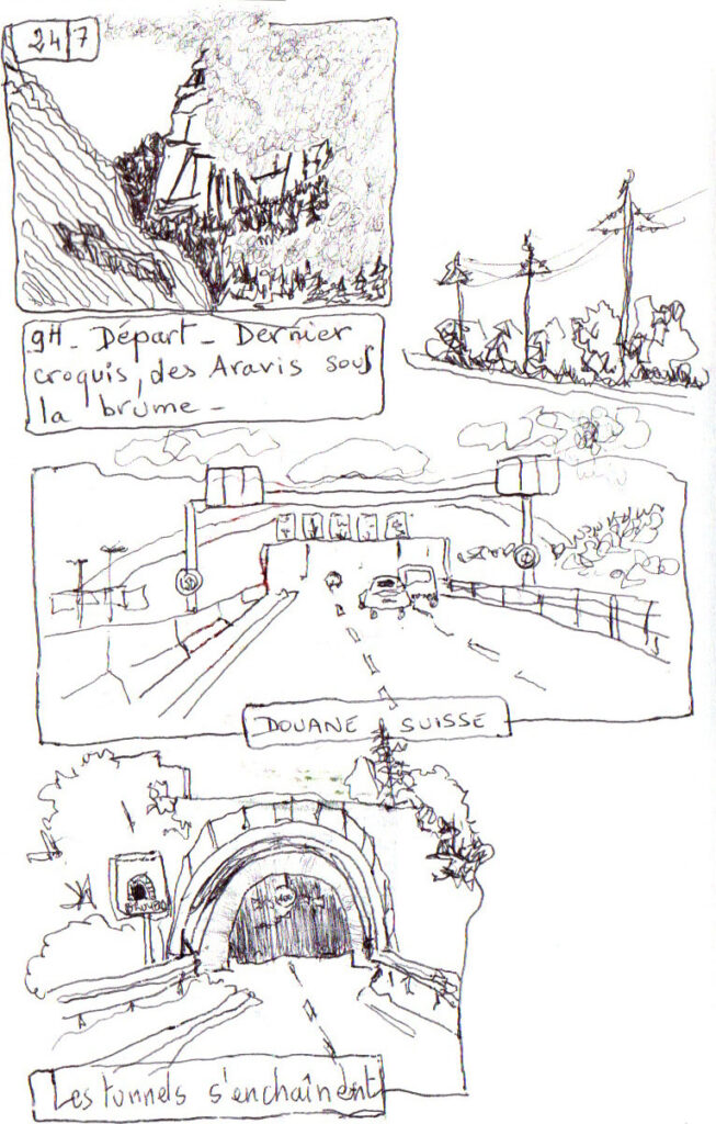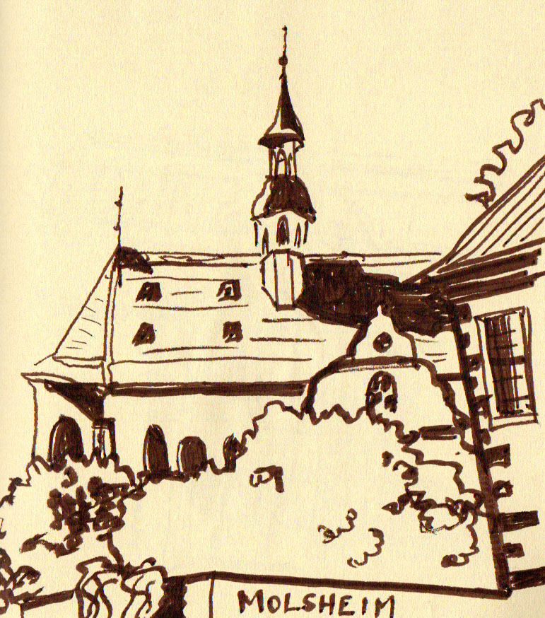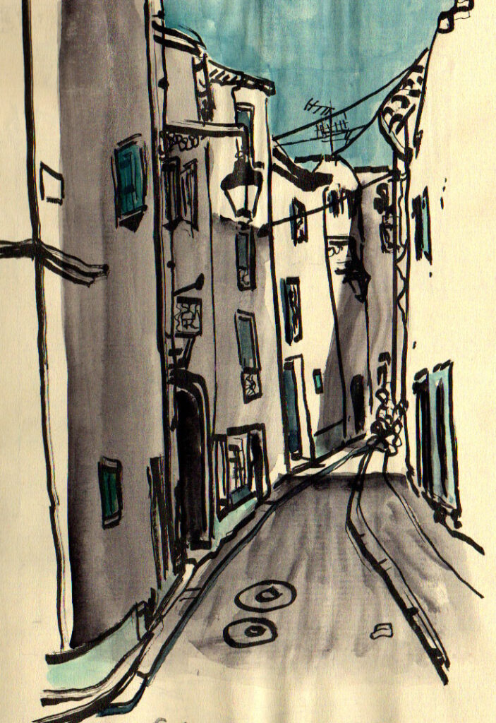 Entre deux rendez-vous, par un froid qui ne donne pas envie de me poser dehors, je fais des croquis sur les parkings de Villé, abritée dans ma voiture. Un stylo noir, un feutre bicolore et c’est déjà l’heure…