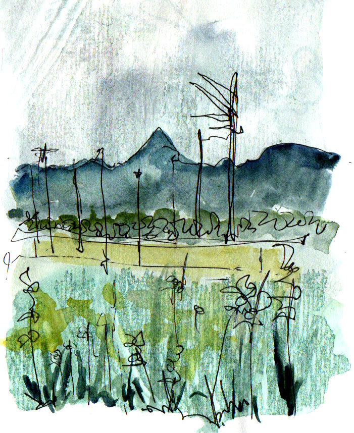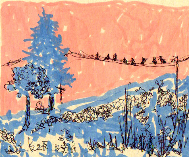 Une photo envoyée d’Ecosse devient un sujet à dessiner. Prendre le temps d’observer à la jumelle… Merci L. pour la photo.