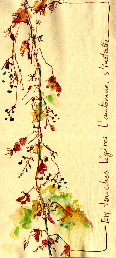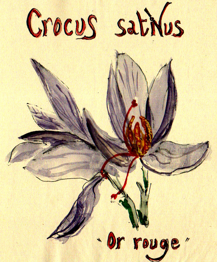 Novembre n’est pas le mois que je préfère. J’ai dû me secouer un peu plus encore pour garder le rythme du croquis quotidien. Les journées raccourcissent, la nature change, le jardin m’appelle encore, je le bichonne pour son entrée dans l’hiver. Dernières récoltes pour les légumes qui le réclament et belle découverte de la culture du crocus sativus. On s’émerveille de ces fragiles stigmates de safran, merci C. pour ce partage.