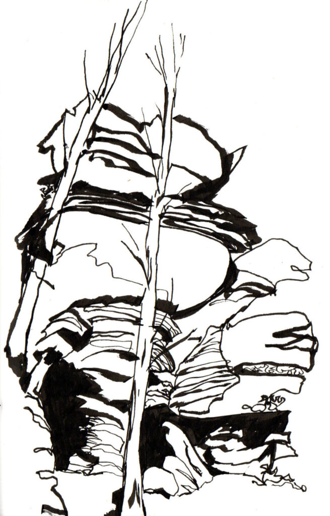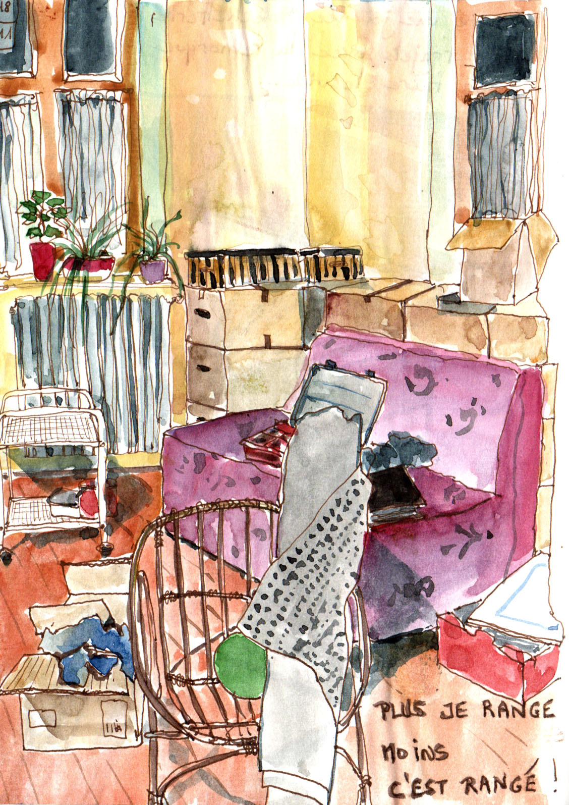 J’ai eu beaucoup de mal à tenir le cap des croquis quotidiens ce mois-ci. Les vagues de chaleur m’épuisent, j’ai souvent tracé sans intention, d’un seul trait, rapidement, et finalement ça me va aussi. Parfois le résultat me plait, parfois moins.