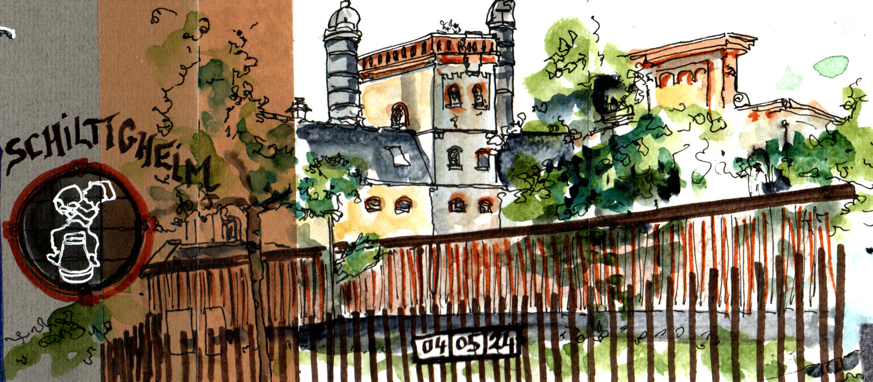 Début décembre c’est depuis les ruines du château du Bilstein que je dessine. Le froid s’est installé, j’irai vite. On est tout seuls sur les hauteurs, moment suspendu.