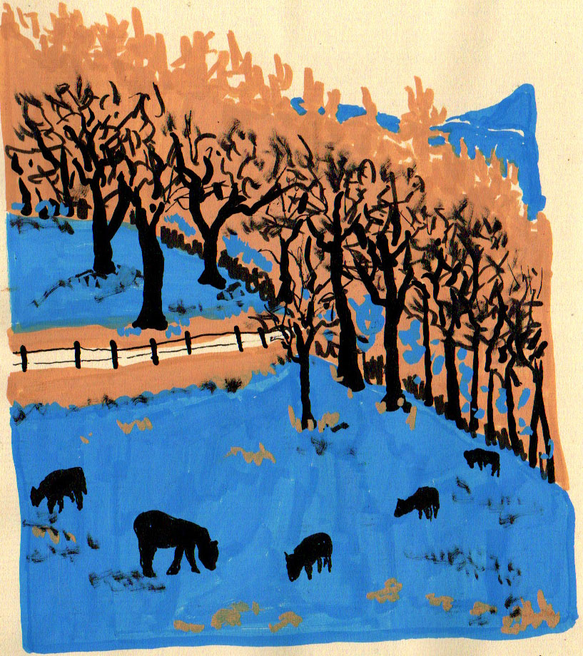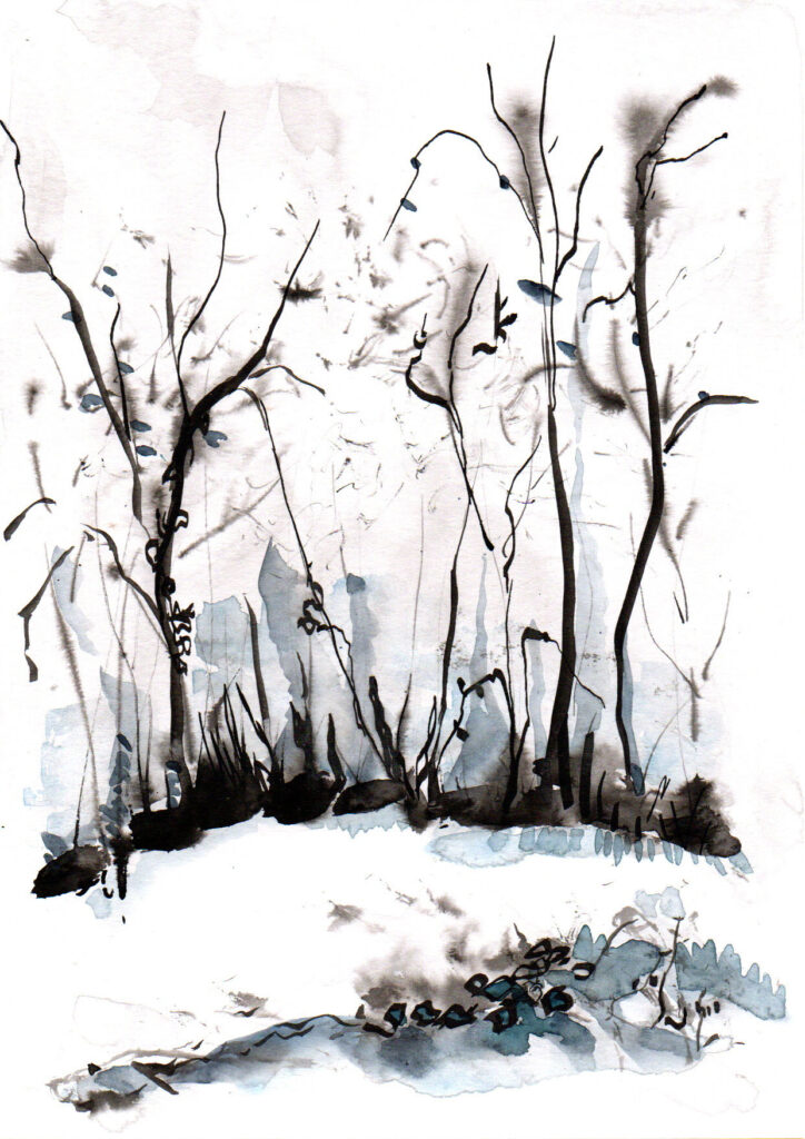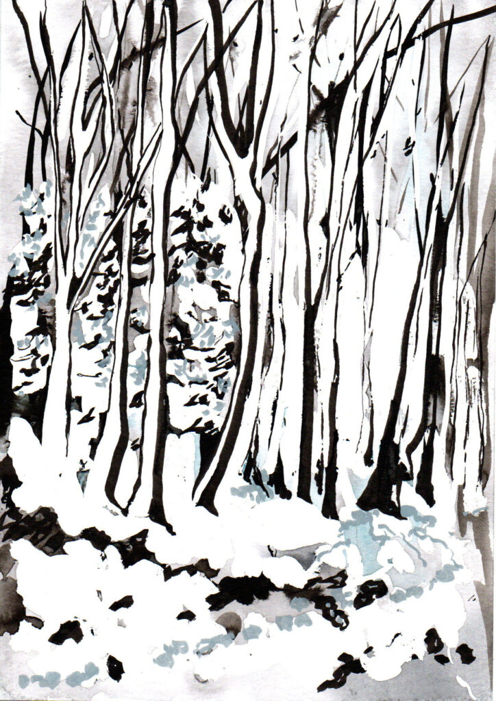 Trop de gris et de pluie pour sortir. Je me replonge dans les photos prises le mois dernier, quand l’univers autour de nous était nappé de blanc. Je travaille sur un format plus grand pour changer.