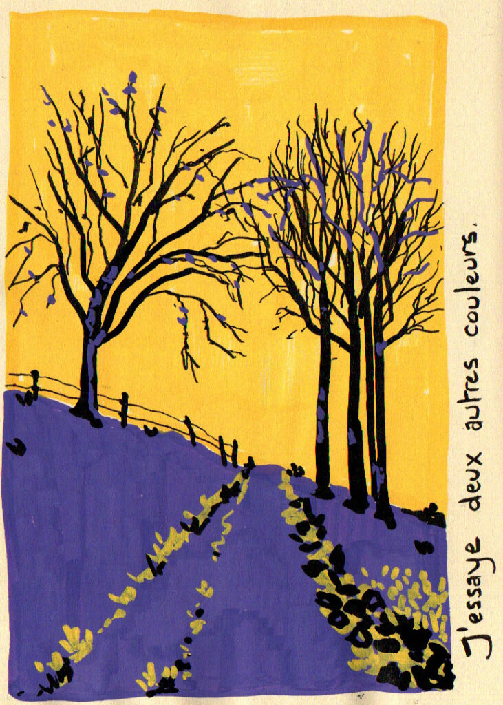 Je continue d’explorer les couleurs et leur association. En forêt…