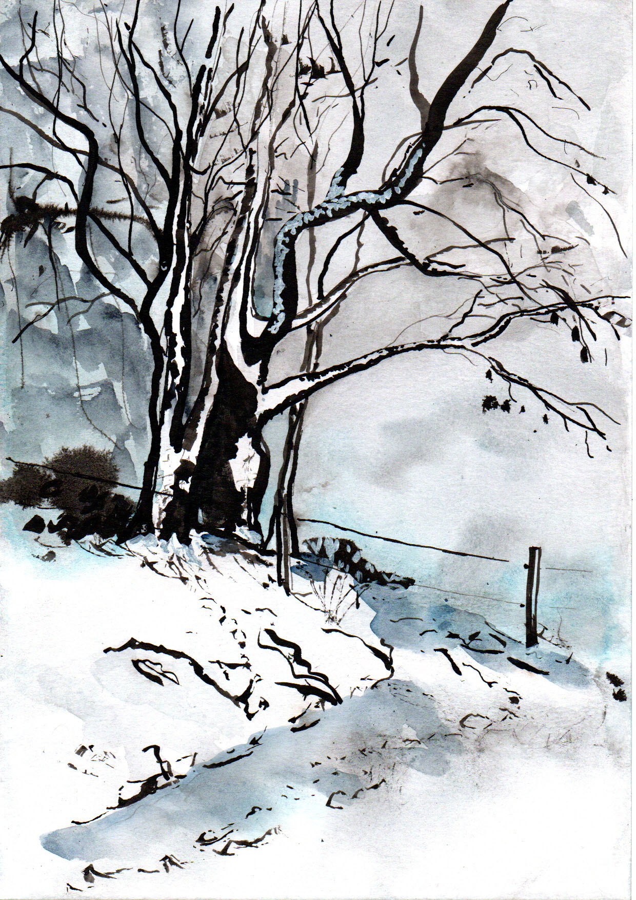 Trop de gris et de pluie pour sortir. Je me replonge dans les photos prises le mois dernier, quand l’univers autour de nous était nappé de blanc. Je travaille sur un format plus grand pour changer.