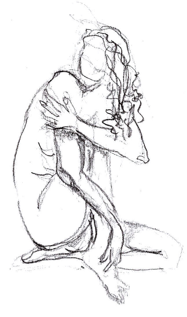 Dessiner un modèle est un exercice que je trouve difficile. La durée des poses induit des tracés différents, des techniques différentes. J’ai testé des durées variant de 30 secondes à 30 minutes. Etonnamment, ce ne sont pas toujours les poses longues qui me réussissent le mieux. Au fil des séances le regard change. Parfois la main s’échappe et j’aime alors le résultat. Il y a comme une alchimie, le modèle donne, le dessinateur interprète. L’échange est respectueux.